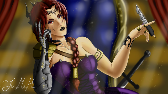 #fantasycharacter #digital #digitalpainting #dndart #fantasy #fantasyillustration #female #femalecharacter #redhair #redhead #rogue #splashart #warriorgirl #dndcharacter #hotgirl #dnddungeonsanddragons
