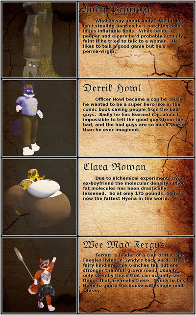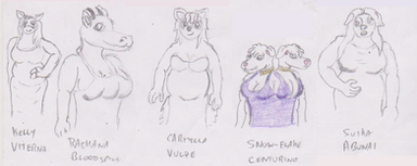 it might have been better to group characters together based on affiliation (Phoebe, Lilith, Syndy, and Picabia) instead of order so that it's easier to tell who's where in the story.