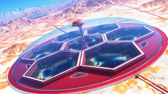 An amateur sci-fi landscape.A human settlement on another planet?