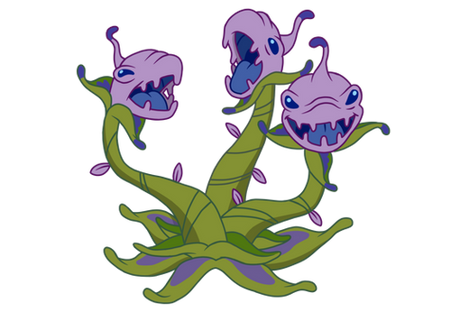 509 is a plant-like experiment with a green stem and leaves-like body and a purple head that has a lizard-like face, little sharp teeth, dark blue pupil-less eyes, and a single antenna sticking out of his head. He is designed to sprout into an uncontrollable forest of destruction. Lilo and Stitch end up catching him after he had grown a lot and put him in an old pineapple-like water tower that was going to be torn down.Related content