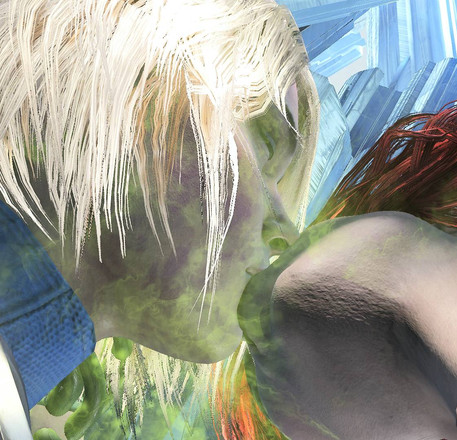 #3d #angel #chainedup #daz3d #female #male #cityofheroes #glowingeyes #kissing #superheroes #blushinggirl #dazstudiopro49