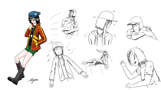 Also, I kinda wanted to convey that she's rather safety-oriented, which is why she has safety signs on all of her equipment.