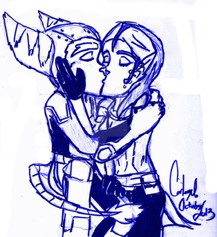 SO I'm doing the Inktober challenge over on tumblr, wherein you draw some inked traditional stuff for October and post it online. I'm gonna try to do something every day for the remainder of the month, but we'll see. And I don't think there's any particular theme other than the drawings being in ink, so impromtu RatchetxTal happened. :y;;Crazy excited for Into the Nexus, with all of the character expression and story-driven plot I've been seeing, it looks like it's gonna be one heck of a ride. <3