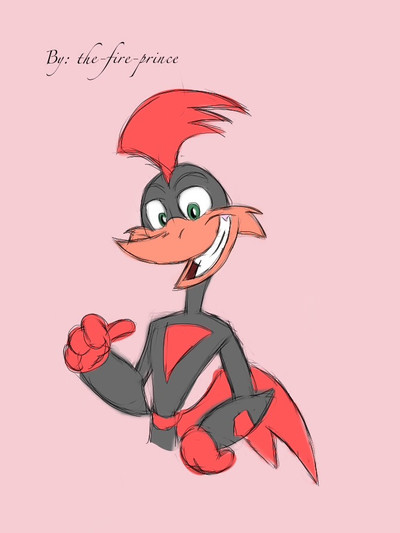 Also, in the same ask on tumblr about my favourite MU characters, I was asked who my fave in Loonatics Unleashed is. Why, dis lil' boid here, as you may have guessed if you've known me on dA for an embarrassingly long time (more for me than you, but second-hand embarrassment definitely counts).And sorry if his text is a little hard to read there. I was going for the way I'd always seen people write for him, which was reinventing the run-on sentence, but I don't think red and red on red was the best life choice I've made.