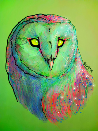 I was pretty much staring at the photo of a Grey Owl that was hanging in my Science room, and I though "Lol what if that was rainbow".Then I made this. :I