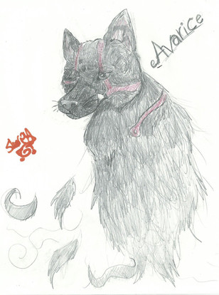 I wanted to make a better reference sheet of my Avarice! I think it turned out pretty good! The tag on her collar says "Property of Greed". Her oroborous is on the back of her left paw, sorry for the crappy looking one on there.Line art by: MCdrawingurl