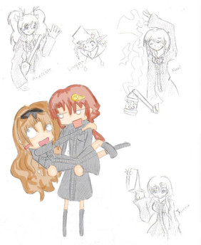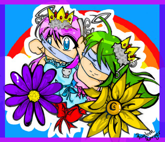 a couple art with someone from gaiaonline (sorry forgotton name) with rikku from ffx2 <3yea the chocobo looks sonstipated. im aware 3