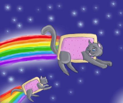 Nyan Cat drawn by me, Exploding Ichigo (Melissa Waldron). Art is property of me, do not use without my consent in writing. Nyan Cat character is copyright to respective owner.I work for indie game company FatHat Games, which started just last year.