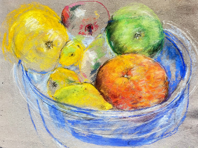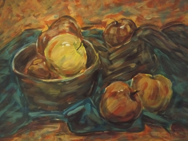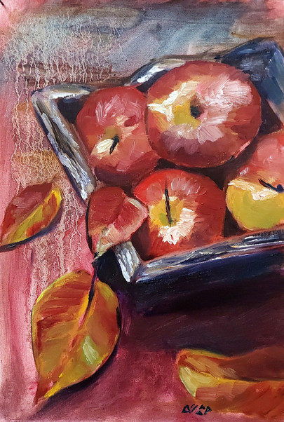 I set up a still life of apples and drew directly from observing them. It felt quite natural to be more visceral with colour selection. I didn't want to replicate only what I saw, but also how I felt.