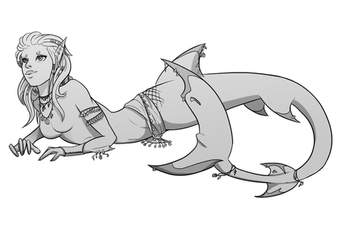 #girl #illustration #mermaid #moonlight #rough #sketch #underwater #wip #algae #coloredsketch #digitalpainting #sharkgirl #mermay
