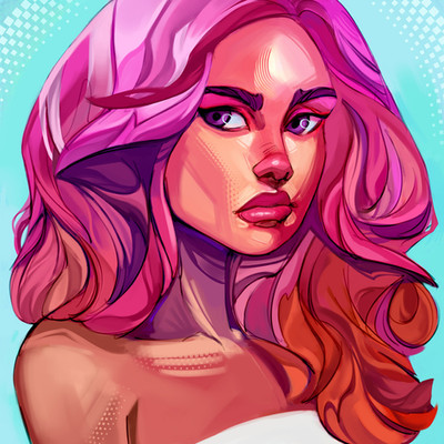 #blue #flashy #girl #pink #portrait #pretty #rough #study