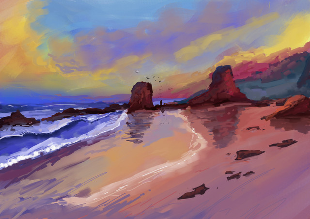 I'm trying to focus more on the colors and lighting rather than on the details, hence the big brush strokes and roughness of it.