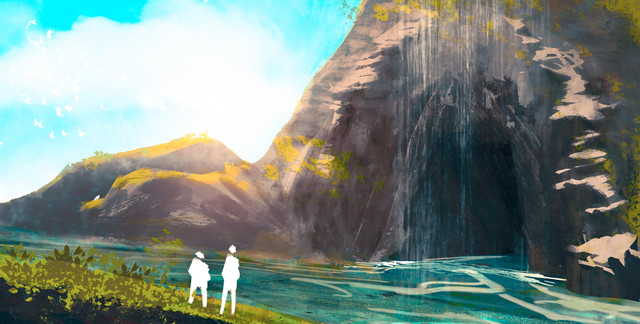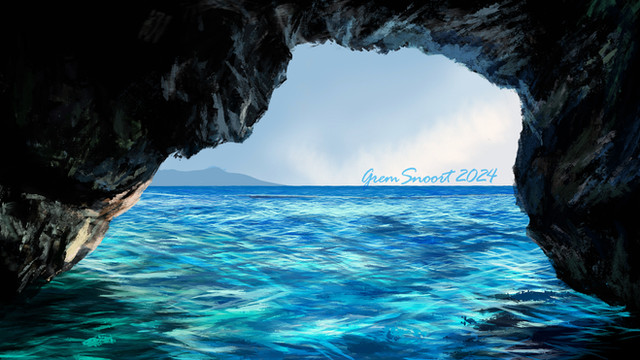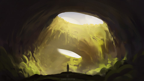 #beach #cave #couple #digital #environment #godrays #lightbeam #ocean #rocks #sand #study #sun #art #landscape