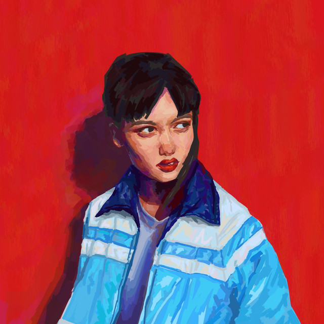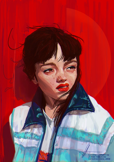 #coat #darkhair #digital #girl #nosering #piercing #portrait #study #brightcolors #red