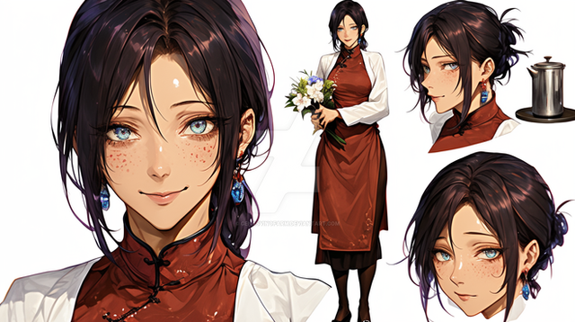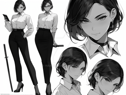 What you get: full ownership of the character, high res image of characters that displayed on page (Total of 26 images : expression portrait, outfits design, desktop and phone wallpaper)
