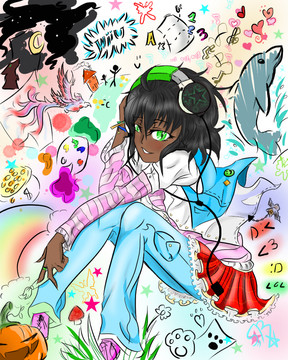 Yay, its my OC Irisif you cover each half of her face, you see that the side with warm colors looks more happy, and the side with cooler colors look more sad (teehee i did that on purpose)