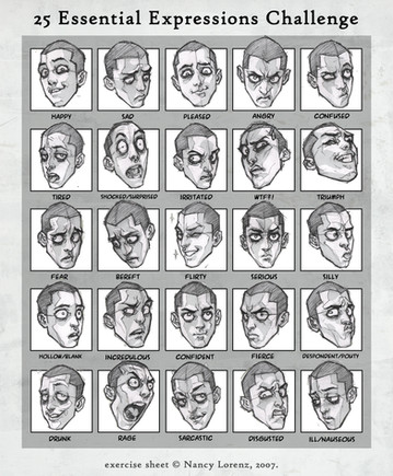 Anyways, I absolutely adore these expressions! Your style is vastly different than my own, but that's good because my own style is far from unique, so I like to vary it by combining elements from other people's styles (I'm a very right brain person... creativity is extinct in my brain... weird for an artist to say, no?). These expressions are great and you've got some very nice descriptions to go with them!