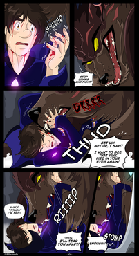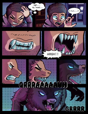 Although I've drawn fanart before related to this fic (see here: www.deviantart.com/expression/… ) and I was pleased with it, as I neared the end I did think, "No, it's no good. The urge to draw this whole moment is just too great."So, to reiterate, this is a scene from "You Bit Me?!" a Sanders Sides (werewolf/vampire au) fanfic by Altruistic Skittles in which as the Sides-inspired characters are attending college, Logan is accidentally turned into a werewolf and transforms a few days later in front of his, definitely surprised, step-brother Patton!