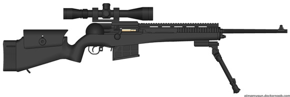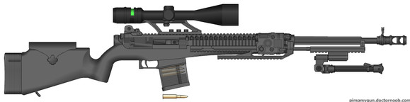 Named after a mythological deity worshiped for their mighty empire and incredible conquest, the Karnus sniper rifle is aptly named, having been at the forefront of a dominating war machine for centuries. The bolt action sniper rifle was given to troops hand selected from infantry companies for their precision and skill. They were then trained to be deadly proficient with their weapon, which is famed for it's light weight given the calibre it fires, as well as its accuracy and distance. The Karnus was taken out of service many decades ago after it was deemed too outdated, although it is still sometimes used amongst some of the most veteran and 'purist' marksmen among the dedicated sniper and assassination teams. Whilst it is no longer a standard issue firearm, it's widespread manufacture for such a long period of time means that the weapon is widely available, and remarkably cheap to buy and maintain, making it a favourite amongst pirates and criminals, as well as civilians and militias, even amongst Human territories, where it is regarded as better than most Human made competitors.
