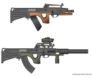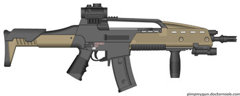Made using doctor noob's Pimp My Gun [link]I got bored, so I decided to recreate my first PMG upload with a few improvements, Got rid of the G36 scope and turned it into a rail, as well as adding a gas block and tube and uncovering the ejection port. Also made a Desert, Urban, Arctic and Woodland version (in that order). Original is here [link]