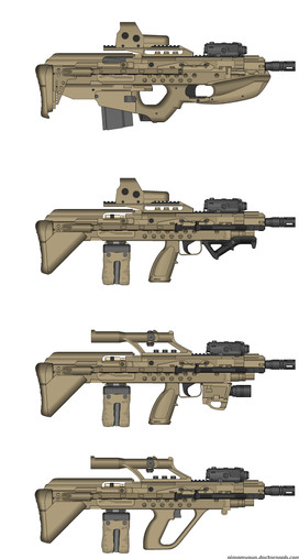 Decided to make a Battle Rifle, tried some more blending on this one so let me know how I did!The bigger brother of the PD-14, the PD-X4 is the favourite of mercenaries, bounty hunters, and big game hunters. The PD-X4 is advertised as a compact, yet powerful semi-automatic marksman rifle, and the recent conflicts and increased pirate activity amongst trade routes has resulted in exponential increases in sales of publicly available, high quality firearms. The Banshee is a lightweight, compact rifle that is perfectly suited to mid to long range combat, and is perfect for puncturing the hides of some of the wildest and most dangerous beats in the galaxy, making it especially popular within the hunting markets as well as PMCs and law enforcement agencies.