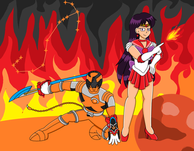 To fight the army of Queen Green Ranger, the worlds have joined together to form small teams, the first team is Pyro Team including:Sailor Mars (Sailormoon)