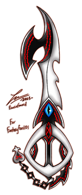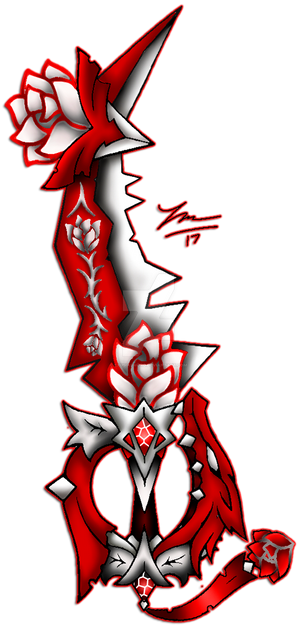 Her signature Crescent Rose acting as the Keyblade's shaft (I had trouble with this design initially, this is actually the second attempt) and a lone rose acting as the Keyblade's teeth.