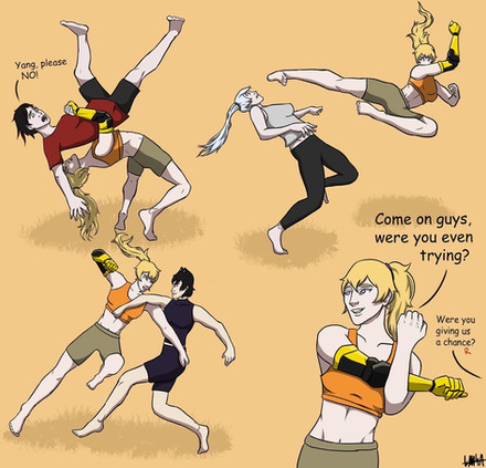 "Subtle", a word unknown to Jaune Arc. Or maybe he is just in Sister Defense Mode again. Damn, Neo is fit.
