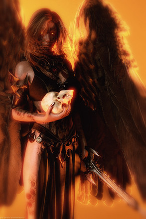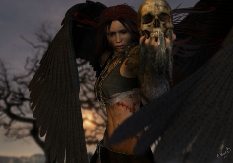 This is a concept piece for a Norse Valkyrie character I have been working on for some time. The model is Victoria 4 and the skin was custom made from a merchant resource kit. Character was rendered in Poser Pro 2014 with some background work done in Vue 2014 and FX work done in Photoshop CS4, and Paintshop Pro X5.Resource Credits: