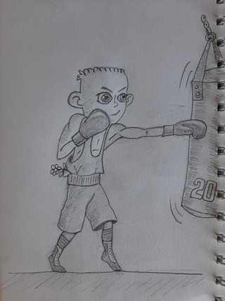 A fast drawing of a cute boy preparing for boxingIt is also an example for my Commission , check my profile page for more details