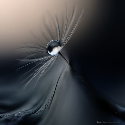 A single droplet of water balancing on a dandelion seed.Enjoy.