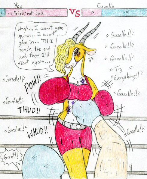 (BIG) GAME OVER - Las Vegas, Nevada - Middleweight Morgyn "Big Game" Hunter's mouthpiece takes an unscheduled flight in the ninth round of her bout against Juniper last night. Juniper's right cross not only knocked Hunter's mouthguard loose, but sent the hometown fighter to the canvas. Hunter narrowly beat the count, but the match was waved off by the referee, giving Juniper a TKO victory.Morgyn's philosophy that "every fight should end with a knockout" backfires on her again...