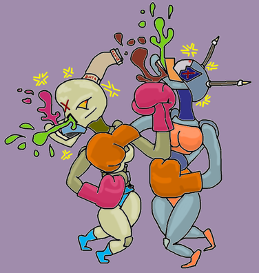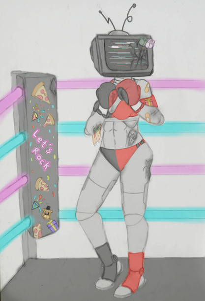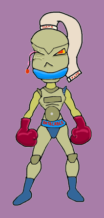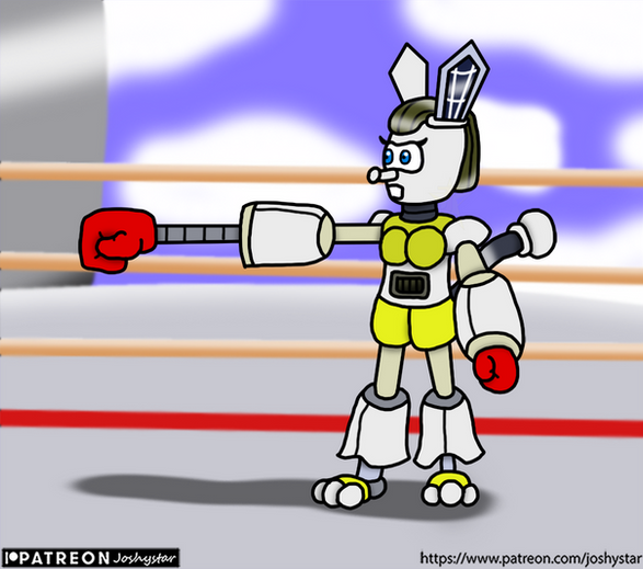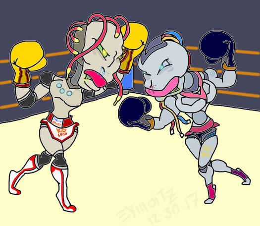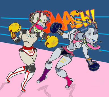 Robot foxy boxer Datacable regroups in her corner between rounds(and across the ring, her opponent, fav.me/dble4he )