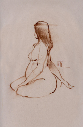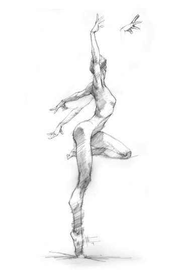 I love the effect of the draping of the strong body over the void, and the feeling of the power of the earth coursing up through her toe-tips to suspend her. I also really like the dreamy languor on her face, and the sensitive rendering of the fingers..... l love it all!