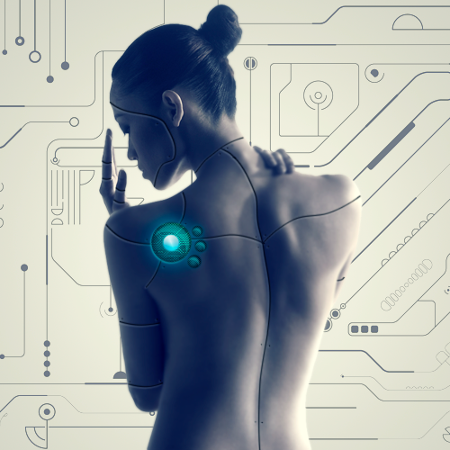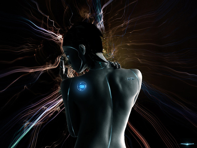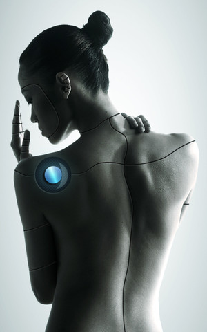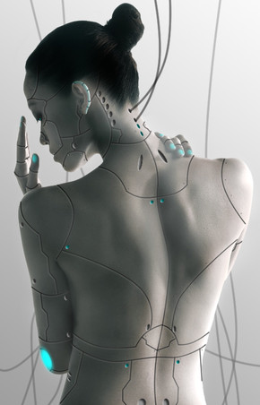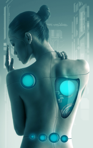 The detail is amazing! I love the detail in the back microchip panel; the shading is just right where it looks the cyborg parts are really just below the skin! And I love glowing slots further down her back (I'm still learning how to make believable "glows" in my pictures) great job!