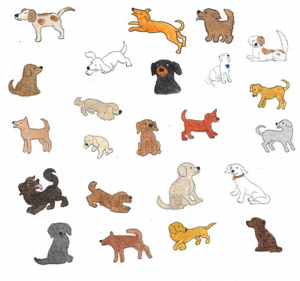 I've been visiting the local dog park in my area a lot for the past month, and after having spent so much time watching, petting, and playing with these lovable animals, I just felt the need to draw a picture of them.Dog Breeds featured left to right: