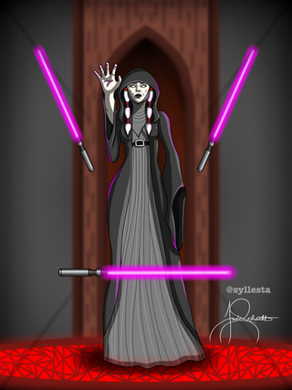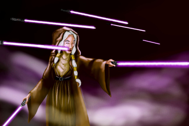 I, too, am a fan of Darth Traya. Like Exar Kun and Darth Bane, she is also a patron saint to me. Yes, I consider myself Sith. I strive to follow the Code. I'm familiar with her story and see myself in her shoes. This scene showing her with three lightsabers is so well done!