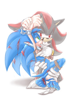 I wonder if sonic has sharp teeths under that serious smile, seems his joyful days of grin go away TuT but I bet is because he'ldn't like his friend to look at him like he looks ;u; specially~~~~