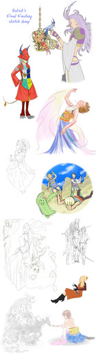 some daily sketches I've been doing *v*I know Rikku isn't in Dissidia but...yeah I will include her anyway