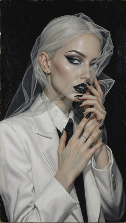 #blackonblack #darkfashion #digitalillustration #enigmaticportrait #fashionart #flux #hiddenidentity #nophotoshop #symbolicart #darkelegance #fantasyrealism #darkglamour #fantasyfashion #mysterywoman #visualstorytelling #aiart #blindfoldedbeauty #mysticaura #sophisticatedstyle #gothicaesthetic #etherealaesthetic #comfyui #intriguingbeauty #fantasyminimalism #fashionmystique #detailsporn #chicandmysterious #minimalistfantasy #moodyelegance #elegantsilence