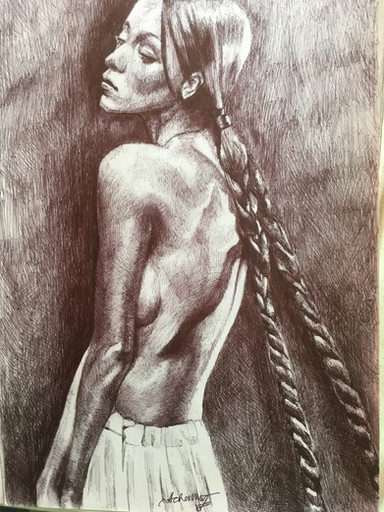 That is a black ballpoint pen scribble done in a A3 size paper.Related content