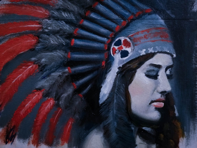 Now that is something I don't do everyday. Someone who already took several of my works wanted something with brushstrokes. I never had acrylic or oil colors. A friend gave a bunch of Camel fabric colors and brushes to use and as the canvas I got a 38 inches/ 36 inches ply board. For 16 years I haven't used brush and after that long amount of time that was the output.Related content