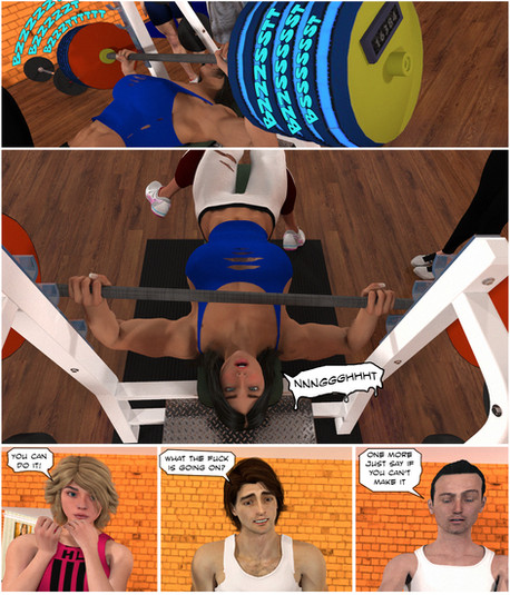 For example, could the guy leave the room and the super muscular Amazon is waiting him behind the door, to catch him , to satisfy her very strong desire?