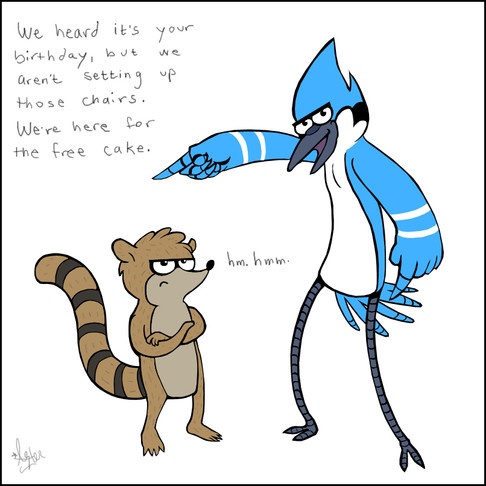 Rigby was just too cute!!!!!!! <3 i love him as a little 6 year old"Guys! Guys! Watch me blow out the candle guys!" X3