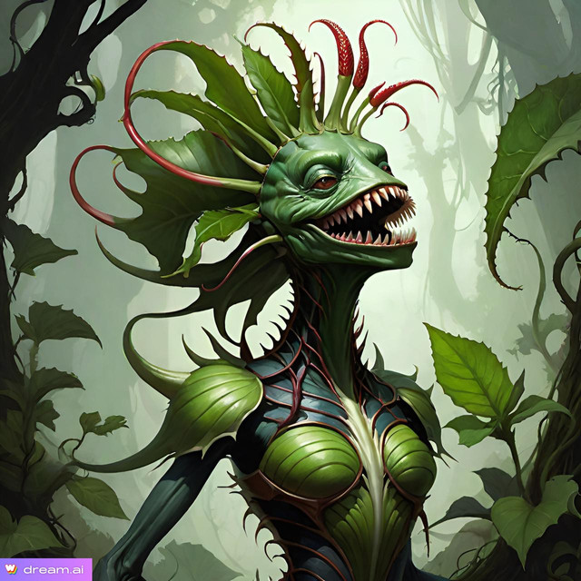 #ai #alien #anthropomorphic #artwork #ature #dark #eating #hybrid #illustration #irreal #paint #painting #strange #surealism #surprise #transformation #transmutation #need #art #anthro_plant #ai_art #ai_artwork #fabinus08 #carnivorious_plant #hybrid_human_plant