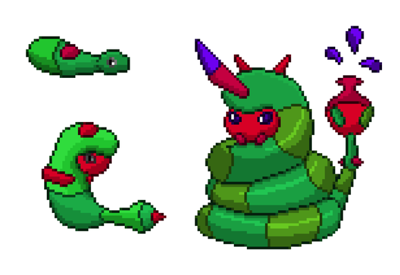 #fakemon #pixel #pixelart #pokemon #snake #snek #sprite #steel #fire