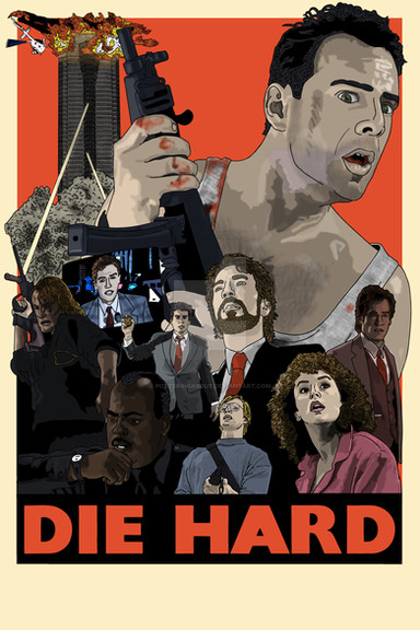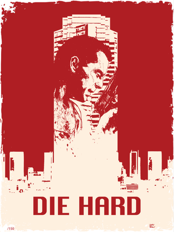 John McClane, officer of the NYPD, tries to save wife Holly Gennaro and several others, taken hostage by German terrorist Hans Gruber during a Christmas party at the Nakatomi Plaza in Los Angeles. The poster shows John McClane approaching Nakatomi Plaza.