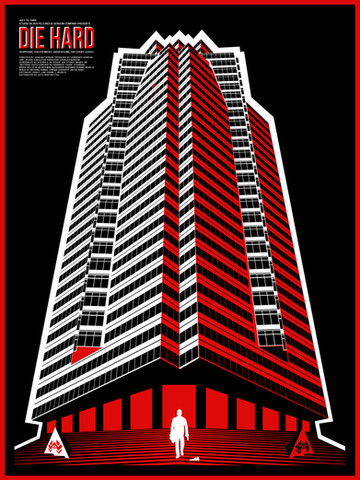 The bulk of content featured within the border treatment of the poster has been given a suggestive shape implying a bomb with the title treatment being the tail.