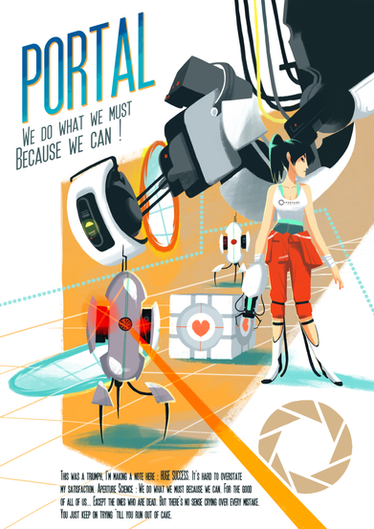 The Portal franchise is such a unique one. It has all the elements of humour and silliness as well as horror and suspense and yet it never goes to far with any of those elements and mixes it all together into something uniquely epic. Yes I am a portal fan and I love how this has been done, set out as if it were a movie poster, something I would see to see made into a film adaptation. Love the turrets, love the cake reference (is it a lie?) and the portal gun itself drawn very well. And in the times when we all thought we were gonna die, we must remember Glados' first song: still alive