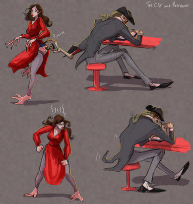 And when Berlin opened his eyes once more, The Cat was barely a hand's breadth from his face, eyeing him under a dark hat that nearly touched the tip of Berlin’s head. A weak buffer to his physical intrusion.